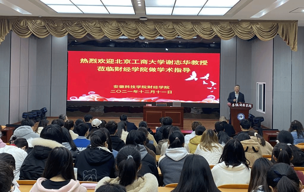 2021年12月11日上午,北京工商大学原副校长、现任教育部工商管理学科指导委员会副主任委员谢志华教授应邀莅临我校财经学院指导新商科专业建设,安徽财经大学会计学院院长翟胜宝教授随行指导。谢志华在敏行楼A一楼报告厅做了题为“新技术与新商科”的学术讲座,星空网页版登录入口党委委员、副校长黄友锐、教务处处长赵伟峰、财经学院党政领导和全体教职工以及2021级会计学、2021级金融工程专业学生参加报告会。财经学院院长郝世绵主持报告会。