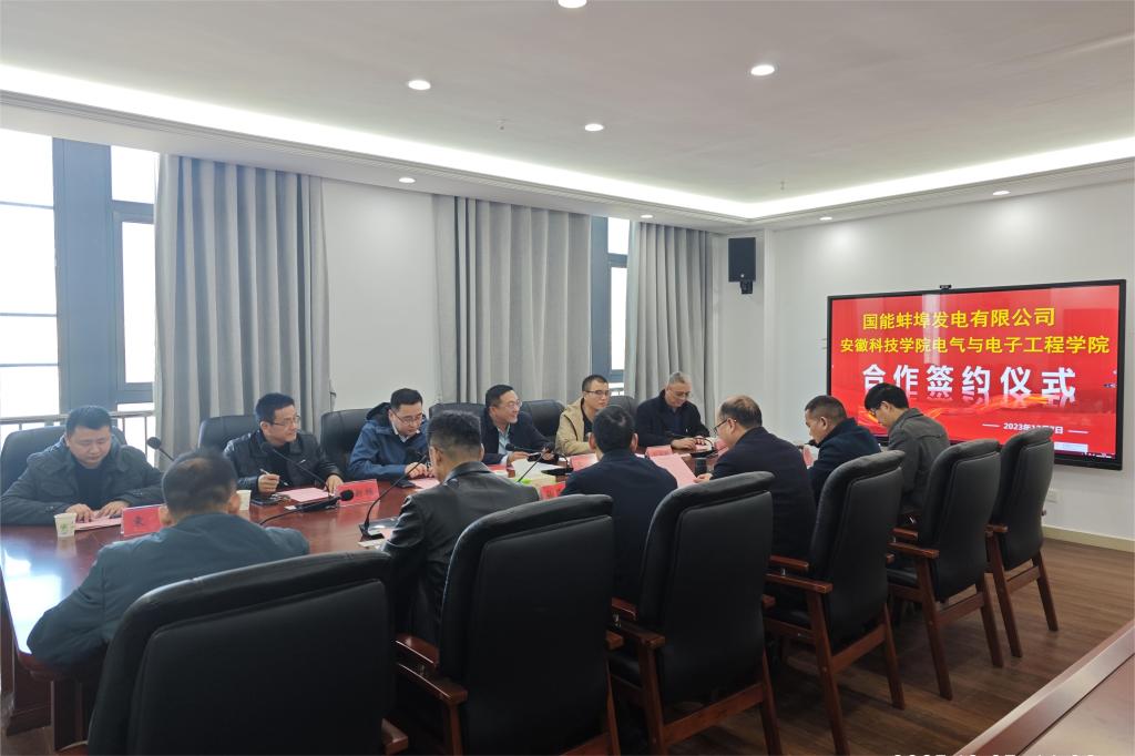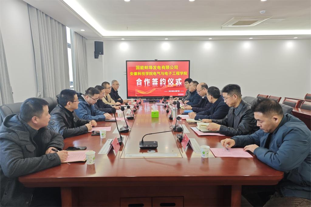 为进一步促进校企产学研合作,加强学校服务企业科技创新,12月7日下午,电气与电子工程学院与国能蚌埠发电有限公司横向科研项目合作签约仪式在龙湖校区西辅楼317会议室举行。星空网页版登录入口党委委员、副校长王孝义,电气与电子工程学院党委书记骆海邦,院长夏显明,副院长国海、樊晓宇,国能蚌埠发电有限公司党委委员、副总经理岑帆,设备管理部主任、党支部书记贾本康,以及双方有关部门负责人出席仪式,并就推进校企深度合作进行座谈交流,会议由夏显明主持。