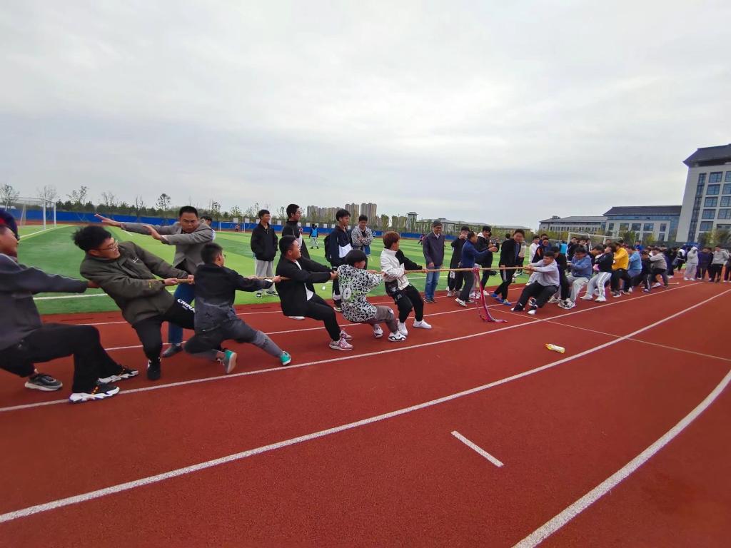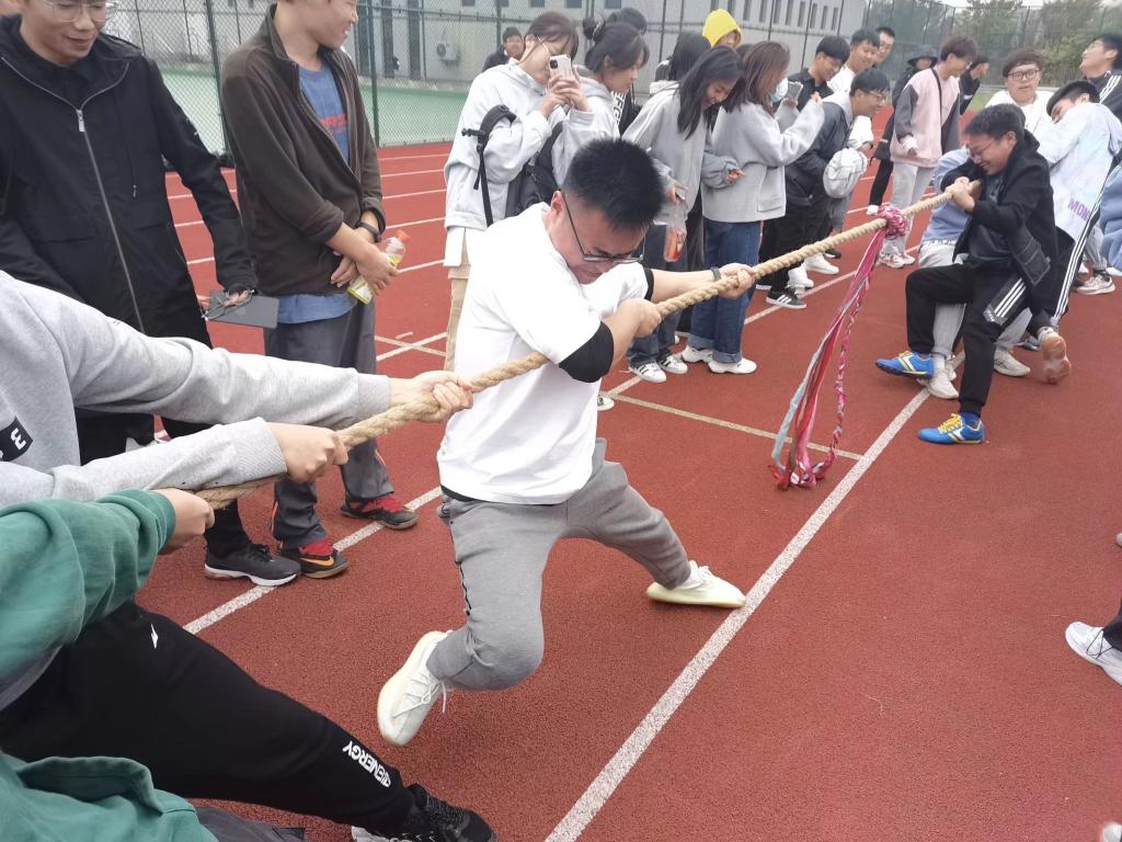 经过一场速度与技巧的较量,紧接着又迎来了一场纯粹力量的竞争——拔河比赛。首先,由电气与电子工程学院2021级新生四个专业分别抽签进行对决。伴随着尚磊的一声哨响,比赛开始。双方队员使出浑身力气把绳子往后拉、身体向后倾斜,咬紧牙关、坚持到底。比赛双方啦啦队加油的呐喊声响彻云霄。运动员喊着整齐的口号、共同攻守,热闹非凡。经过激烈的比赛角逐,最后2021级电子信息工程专业的队伍获得了冠军。