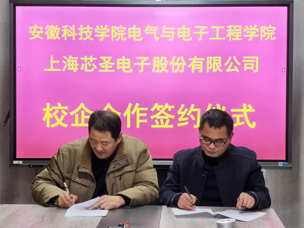 为进一步促进校企间合作,强化学生与就业市场间的联系程度,电气与电子工程学院积极探索校企合作事宜。2022年1月,学院邀请上海芯圣电子股份有限公司代表来校进行校企合作签约仪式。企业代表陆勇俭、张静、秦浩杰,学院党委书记骆海邦,党委副书记、副院长(主持工作)夏显明,党委副书记、纪委书记尚磊,电气工程系副主任徐朝胜,就业联系人洪乃羽出席会议。