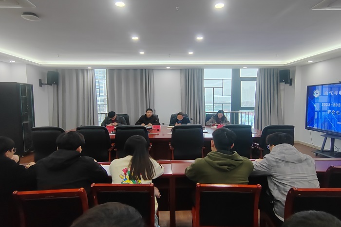 3月25日下午,电气与电子工程学院于西辅楼317会议室召开2023-2024学年第二学期研究生培养交流会,学院党委副书记、纪委书记尚磊,副院长国海、副院长樊晓宇、辅导员陈磊新及全体研究生参加会议,会议由陈磊新主持。