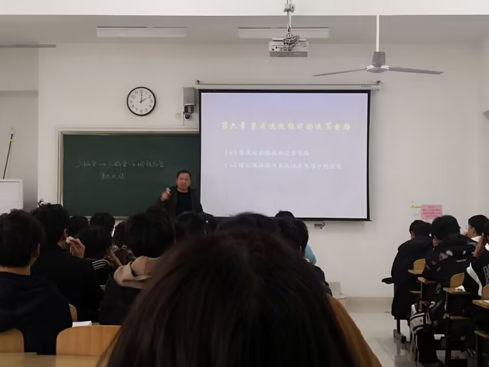 为深入贯彻落实教育部《高等学校课程思政建设指导纲要》文件精神,把思想政治工作贯穿教育教学全过程,进一步发挥课堂教学育人的主渠道作用,11月21日下午第五节课,光电工程系李勇老师在致知楼A209教室开展了《模拟电子技术》课程思政示范教学观摩课,光电工程系老师全程观摩学习。