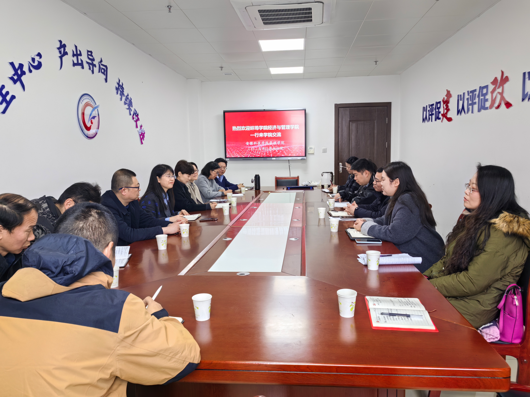 3月13日上午,蚌埠学院经济与管理学院副院长陈荣一行来校调研本科教育教学管理和审核评估工作。管理学院副院长郑谦、副院长张国宝、学院党政办公室和教务办公室相关人员,以及系室主任代表参加会议,会议由张国宝主持。