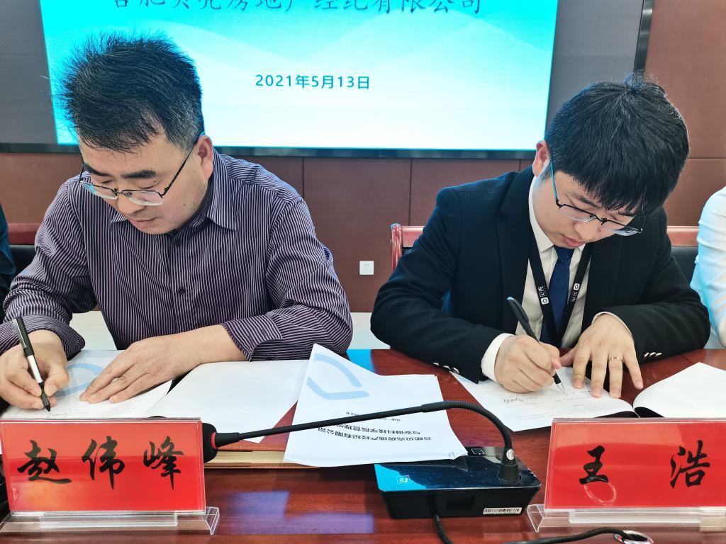 赵伟峰与王浩共同签署了《星空网页版登录入口与合肥贝壳房地产经纪有限公司校企合作协议书》,举行了人才培养合作班授牌仪式。