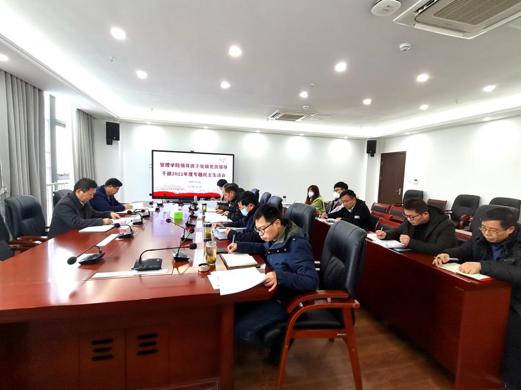 根据学校党委统一安排,2月24日上午,管理学院党委在西附楼317会议室召开处级党员领导干部2022年度专题民主生活会。校党委巡察办公室主任张宏喜、校党委宣传部副部长姚文均到会指导。管理学院党政班子全体成员及党支部书记参加会议。会议由院党委书记丁景良主持。