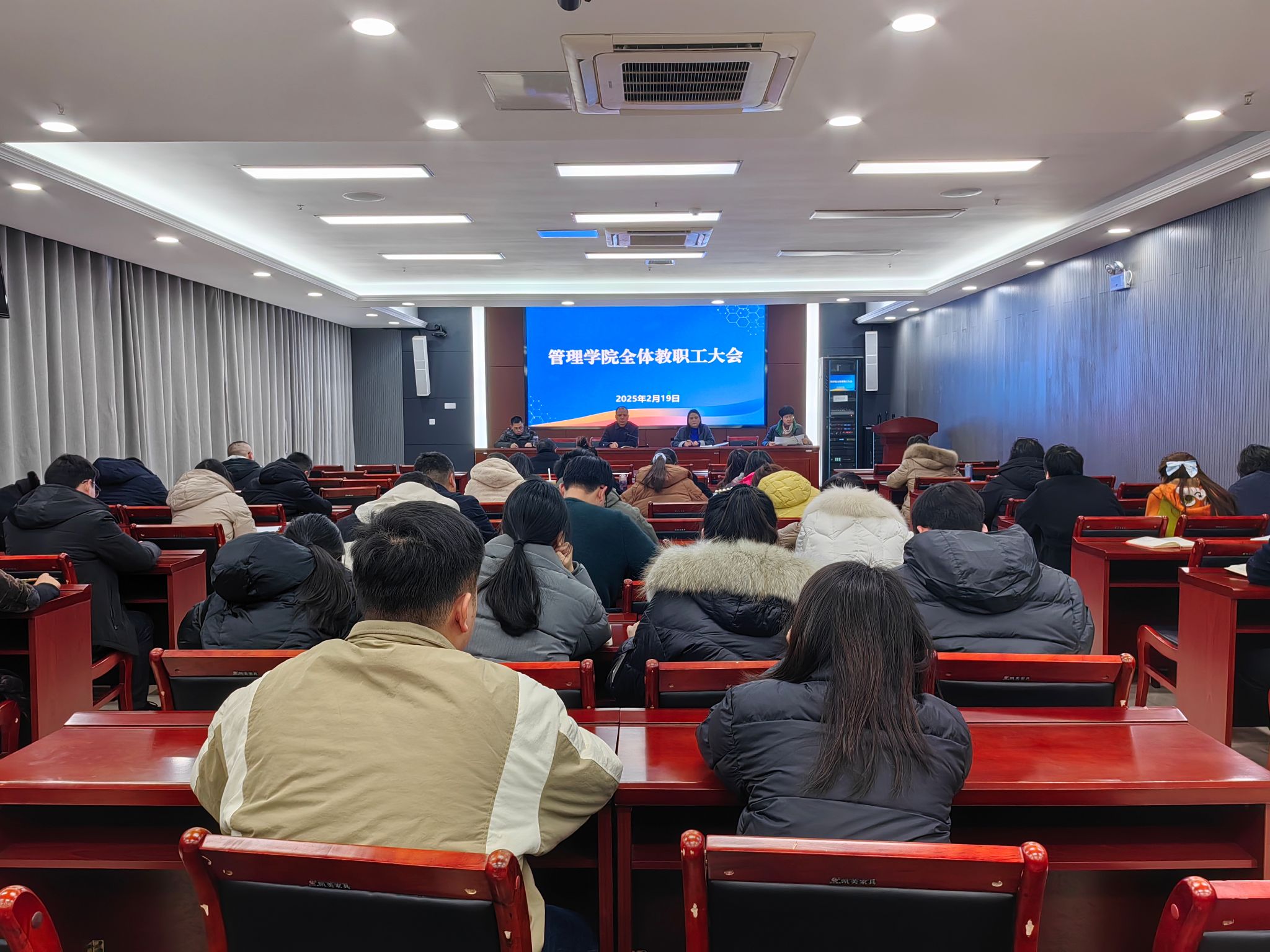 2月19日下午,管理学院在西附楼111会议室召开全体教职工大会,部署安排新学期重点工作。学院党政领导及全体教职工参加会议,会议由学院党委书记丁景良主持。