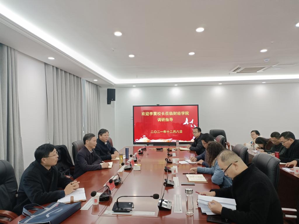 12月8日下午,党委副书记、校长李震,党委委员、副校长李升和及研究生处处长张春雨一行调研指导财经学院会计专业硕士学位点申报工作。财经学院党政领导班子成员,财管系、会计系全体教师以及学院所有副高以上教师参加会议,会议由财经学院院长郝世绵主持。