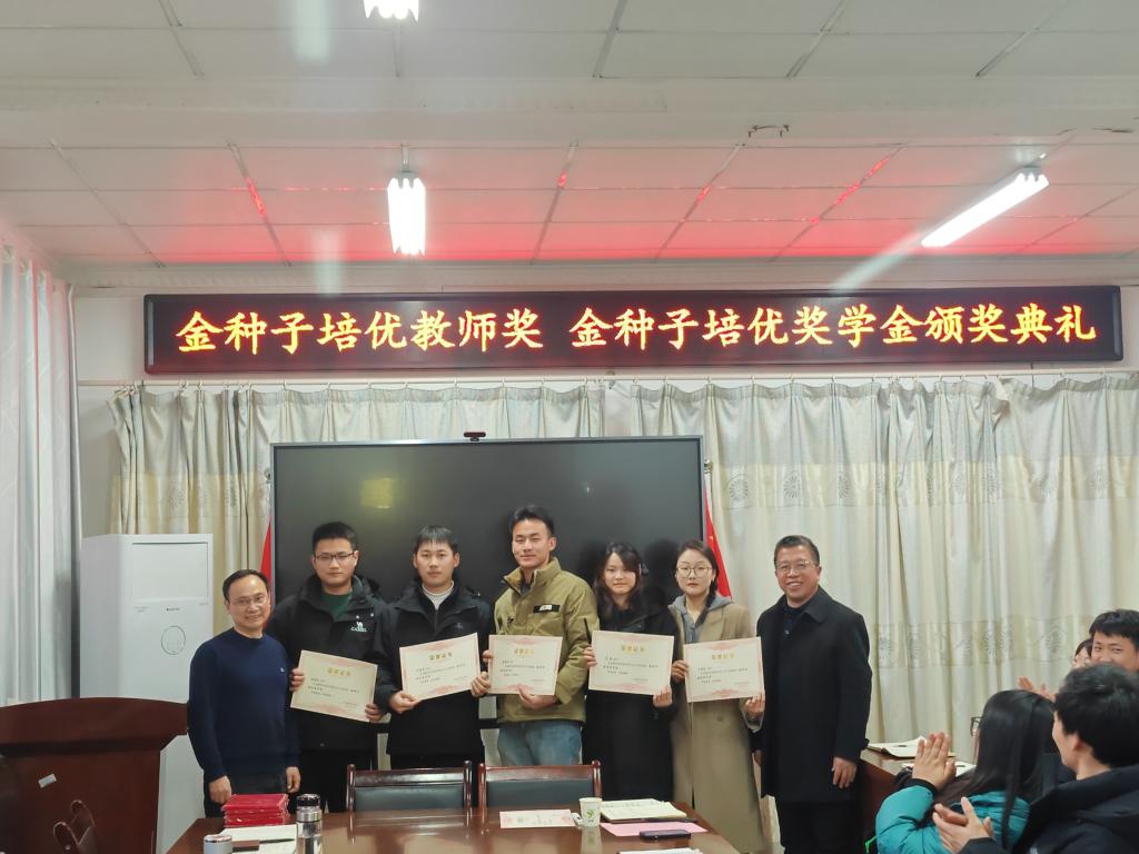 1月11日下午,“金种子培优基金”2023年度“金种子培优奖学金”“金种子培优教师奖”颁奖仪式在农学院会议室隆重举行。校党委委员、副院长李升和,上海景领投资管理有限公司合伙人、基金发起者黄宪先生,二级教授、基金发起者农学院黄先忠老师,农学院党委书记何世潮,副书记张轶辉,副院长舒英杰和李文阳以及教师代表和学生代表出席颁奖仪式。根据《星空网页版登录入口农学院“金种子培优基金”申报细则》和申报人申请,经“金种子培优基金”评审委员会评审,李瑞宁、艾昊两位青年教师荣获金种子培优教师奖,孙张论、李婷、杜孟祥、杨德坤和王静婷五位农艺与种业专业研究生荣获金种子培优奖学金。颁奖仪式由农学院党委副书记、院长崔广荣主持。
