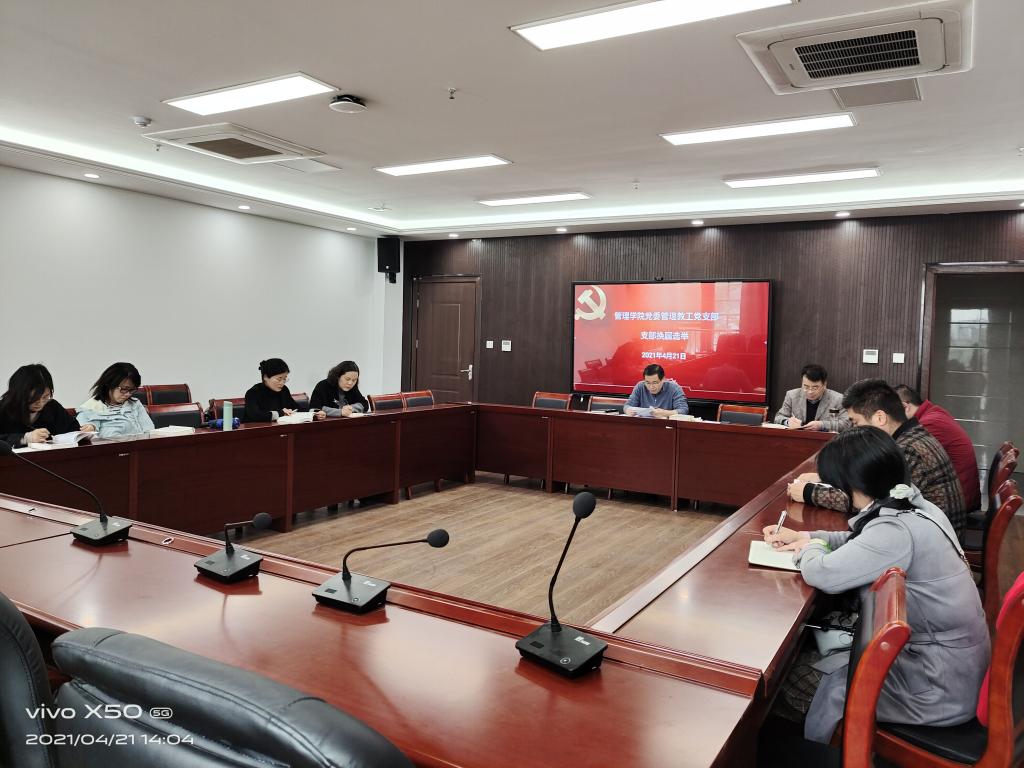 根据学校《中共星空网页版登录入口委员会组织部关于认真做好基层党支部换届选举工作的通知》(组字〔2021〕12号)工作安排,管理学院党委所属各党支部有序组织召开党员大会,顺利完成党支部换届选举工作。学院全体领导班子成员分别参加各党支部换届大会,对各党支部换届工作给予了有力指导。