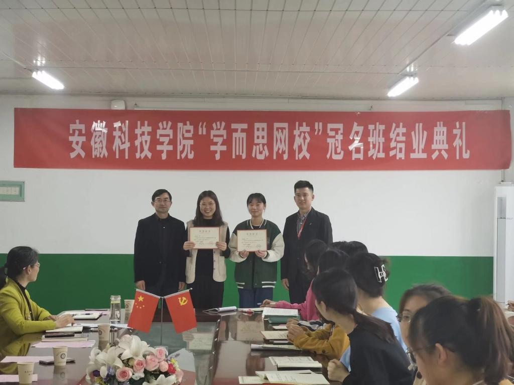 4月25日下午,外国语学院在学院会议室举行“学而思网校”冠名班结业典礼。学而思网校皖北区域负责人李晨瑜、招聘负责人凌达、冠名班企业方班主任蔺一峰、外国语学院院长陈德用、党委书记蔡为青、副书记张海亮、团委副书记宋兵兵等校企双方领导出席典礼,冠名班全体学员参加活动。典礼由张海亮主持。