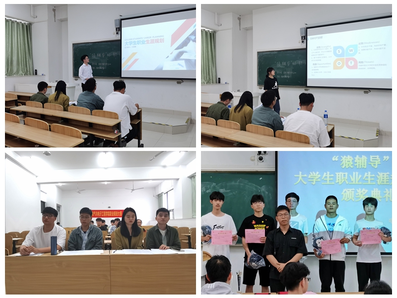 比赛开始后,主持人首先宣读比赛流程及评分标准,参赛选手依次上台通过PPT来展示他们的职业生涯规划。他们结合自身的优缺点,对自己的职业进行合理选择和规划。参赛选手介绍完后,评委们根据参赛选手的表现,逐一进行提问,并给予相应建议。评委们指出,大学生在制定职业规划时,应重点考虑四个时期,其一是在校期间,完成学业,积累能力;其二是毕业之初,勇于试错,积极择业;其三是奋斗时期,踏实努力,稳步前进;其四是成熟时期,回报社会,发挥价值。最终,丁亚平获得一等奖,方嘉靖、刘雯洁、王啊康获二等奖,余雪茜、曹城、黎欣雨获三等奖。建电201班、光电203班获得优秀组织奖。