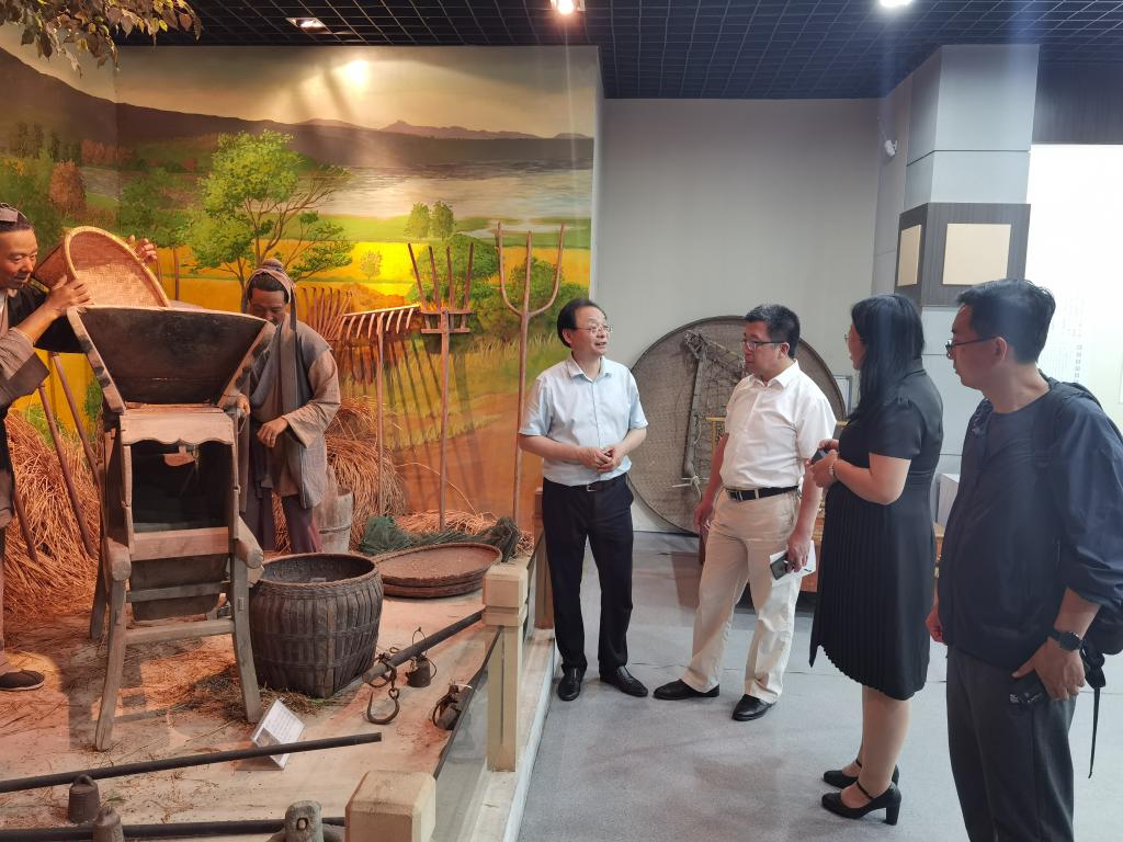 为认真贯彻落实习近平总书记关于传承农耕文化指示精神,大力传播传承农耕文化,深入推进党史学习教育,6月3日,农学院党委书记何世潮带队赴安徽省农业博物馆(农博馆)实地考察学习,双“农”同心,洽谈合作共建星空网页版登录入口“三农文化墙”事宜,传播传承农耕文化。农学院植物保护系主任毕亚玲博士、现代农业实习实训中心主任郑甲成博士、副主任王增霞博士随同调研。