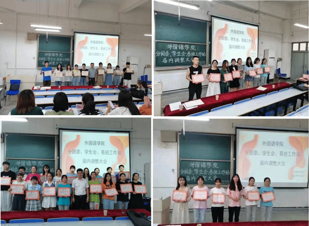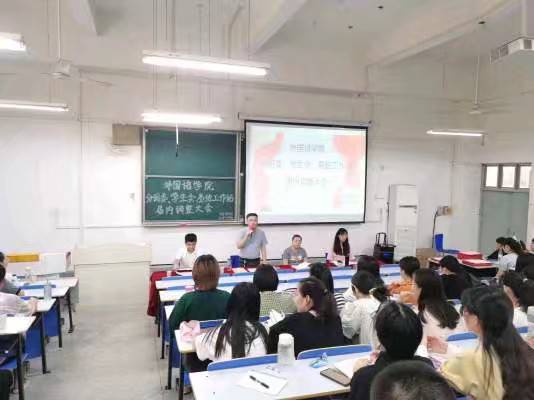 2021年9月8日下午,外国语学院在求A106教室举行2020-2021学年学生骨干培训班结业典礼暨学院分团委、学生会、易班工作站届内调整大会。学院党委副书记张海亮、党政办主任陈慧中、团委副书记宋兵兵、辅导员张薇薇出席会议,会议由宋兵兵主持。