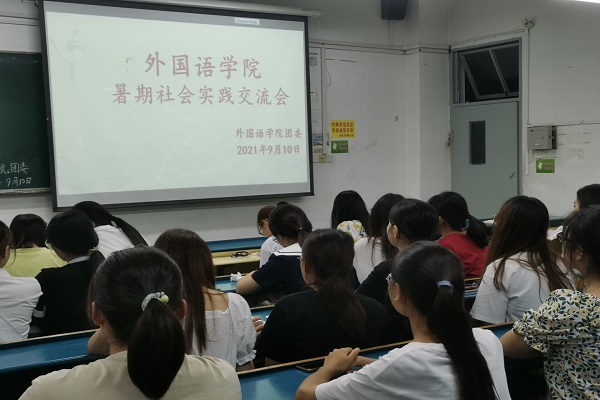 9月10日晚,外国语学院在求b106教室开展了暑期社会实践交流会,院团委副书记宋兵兵出席会议,分团委全体成员,各班级团支书参加,会议由宋兵兵主持。