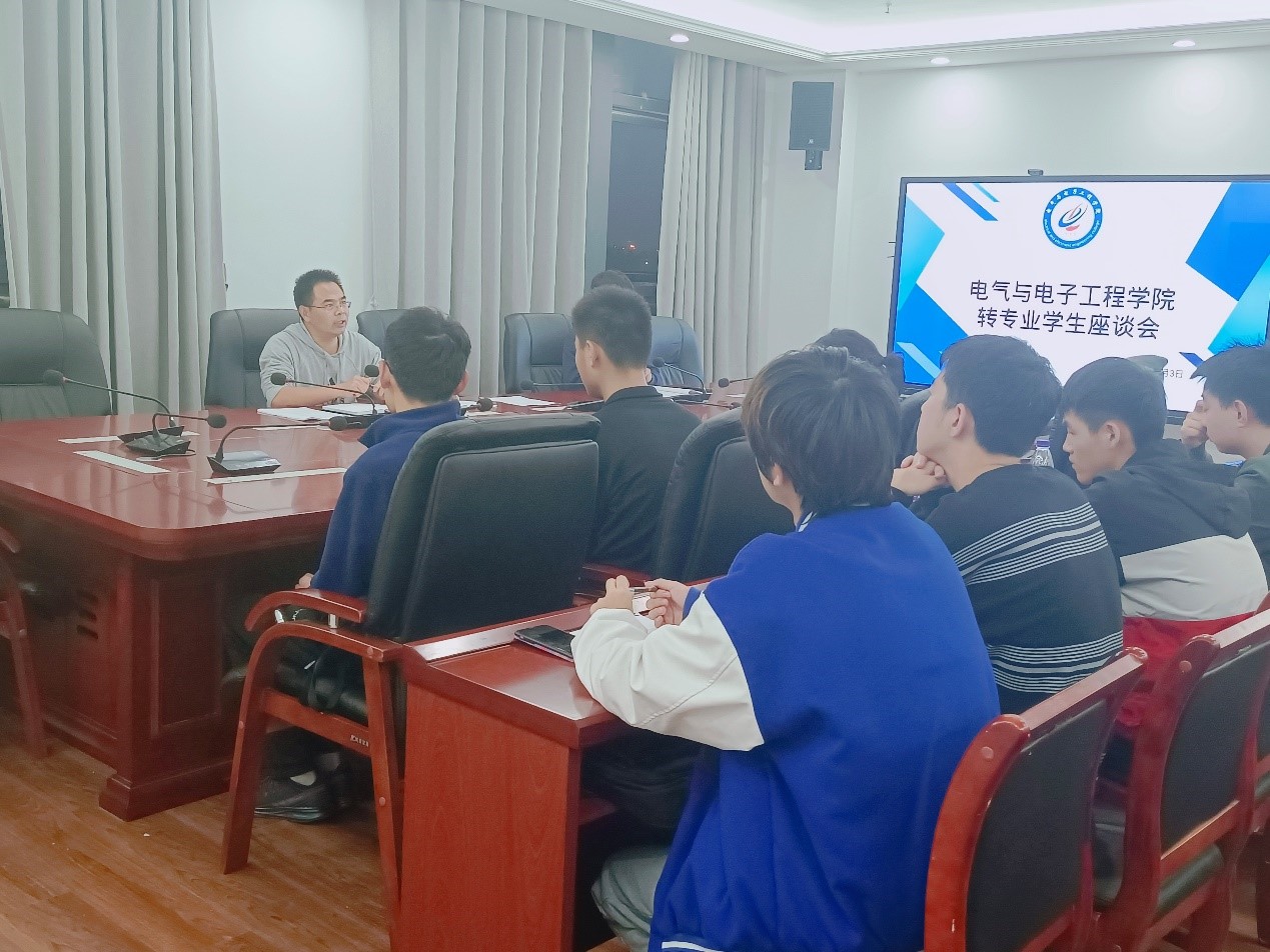 在听取各位同学的发言后,陈更强就电气与电子工程学院日常管理规定、团学活动特点、学风建设要求、各专业课程特点,学科竞赛等方面进行详细介绍。希望大家生活和心理方面尽快转变,适应新环境融入新集体,遵守学院的各种规章制度,为学院和班级建设出谋献策,多做贡献;要在学习上做好调整,熟悉专业特点,端正学习态度,运用适当的学习方法,“态度”和“方法”是克服学习困难的制胜法宝。最后,他逐个询问与会学生生活和学习中存在的困难,以及需要学院解决的问题,并进行详细记录整理,表示将及时和相关部门沟通协商,尽快解决。最后,陈更强鼓励转专业同学,选其所爱,爱其所选,在新的专业新的班级,勤奋工作,努力学习,取得新成绩。