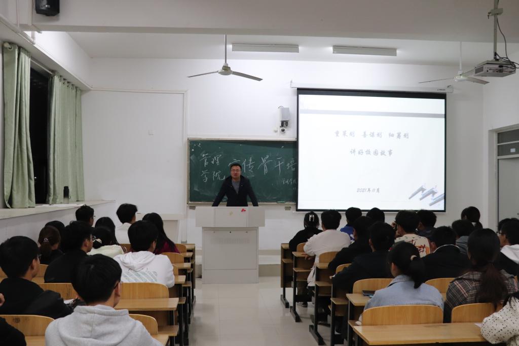 为提高管理学院学生宣传骨干工作素养,增强业务工作能力。11月15日晚,管理学院在龙湖校区致知楼C108教室组织开展宣传骨干培训活动,院辅导员、团委副书记江旭聪老师应邀作专题讲座,辅导员姚姝媛老师、黄斐老师出席。