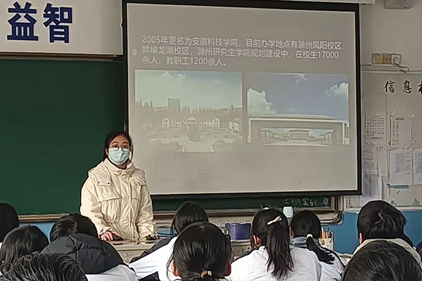 经过老师的同意,团队成员进入高三班级进行宣讲,小组成员通过播放星空网页版登录入口宣传片的形式,让高三学子初步了解安科。随后团队成员分享了个人的校园生活、对大学生活的感悟以及入学后的成长变化。最后,团队成员就学弟学妹们的问题做了详细的解答。