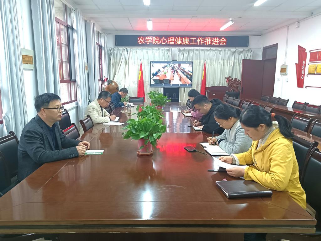 为进一步提高学生心理健康工作的针对性和有效性,扎实做好疫情防控下学院学生心理健康教育工作,4月15日下午,农学院在学院会议室以线上线下相结合的形式召开心理健康工作推进会。农学院党委书记何世潮,党委副书记、纪委书记张轶辉,全体专兼职辅导员参加会议。会议由农学院心理健康工作负责老师郑玉莲主持。