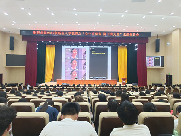 为加强新生理想信念教育,9月29日晚,财经学院邀请校党委组织部副处级组织员许欣为2022级新生作以“心中有信仰,脚下有力量”为主题的报告会。报告会由院党委副书记、纪委书记耿广汉主持。学院新生辅导员及2022级新生全程聆听了讲座。