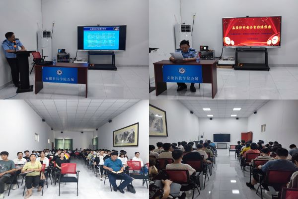 为进一步贯彻落实上级有关文件精神,提升师生反恐防诈意识,9月28日下午,我校在凤阳校区团委多功能厅组织开展“反恐防诈安全宣传进校园”主题讲座,凤阳县政保大队、洪武路派出所和校保卫处有关负责同志出席了此次讲座。此次主题讲座由生命与健康科学学院党委副书记彭丽萍主持,生命与健康科学学院2020级、2021级各班学生代表参加。