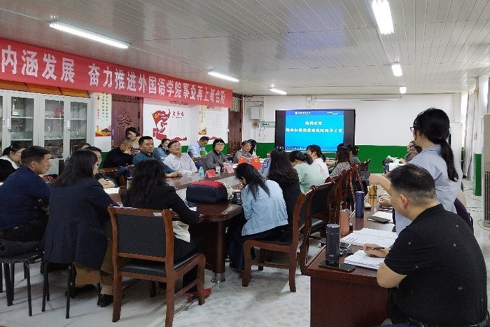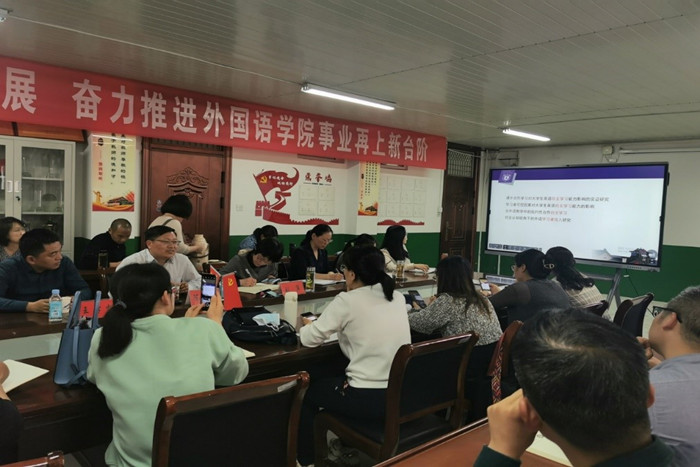 4月17日下午,外国语学院邀请南京大学陈新仁教授在学院会议室开展学术交流活动,陈教授为学院全体教师做了题为“外语教学研究的选题与论文写作”的学术讲座,外语教学与研究出版社经理王学松应邀列席。讲座由外国语学院院长刘萍主持,学院全体党政领导出席,所有下午无课教师认真聆听了学术讲座。