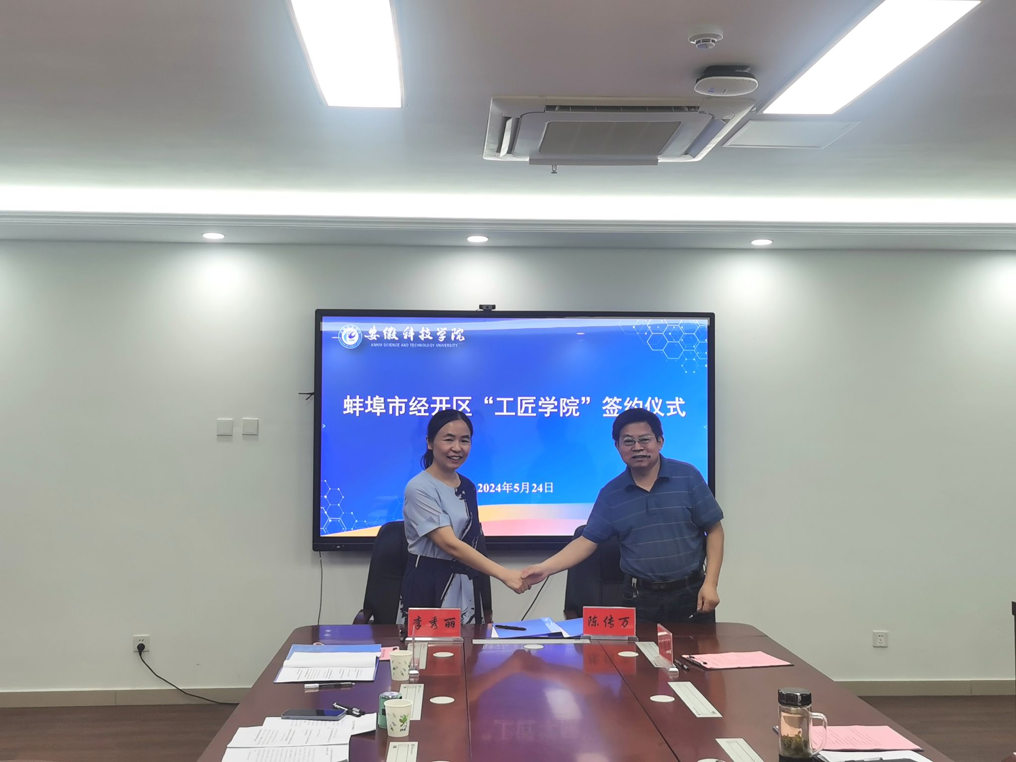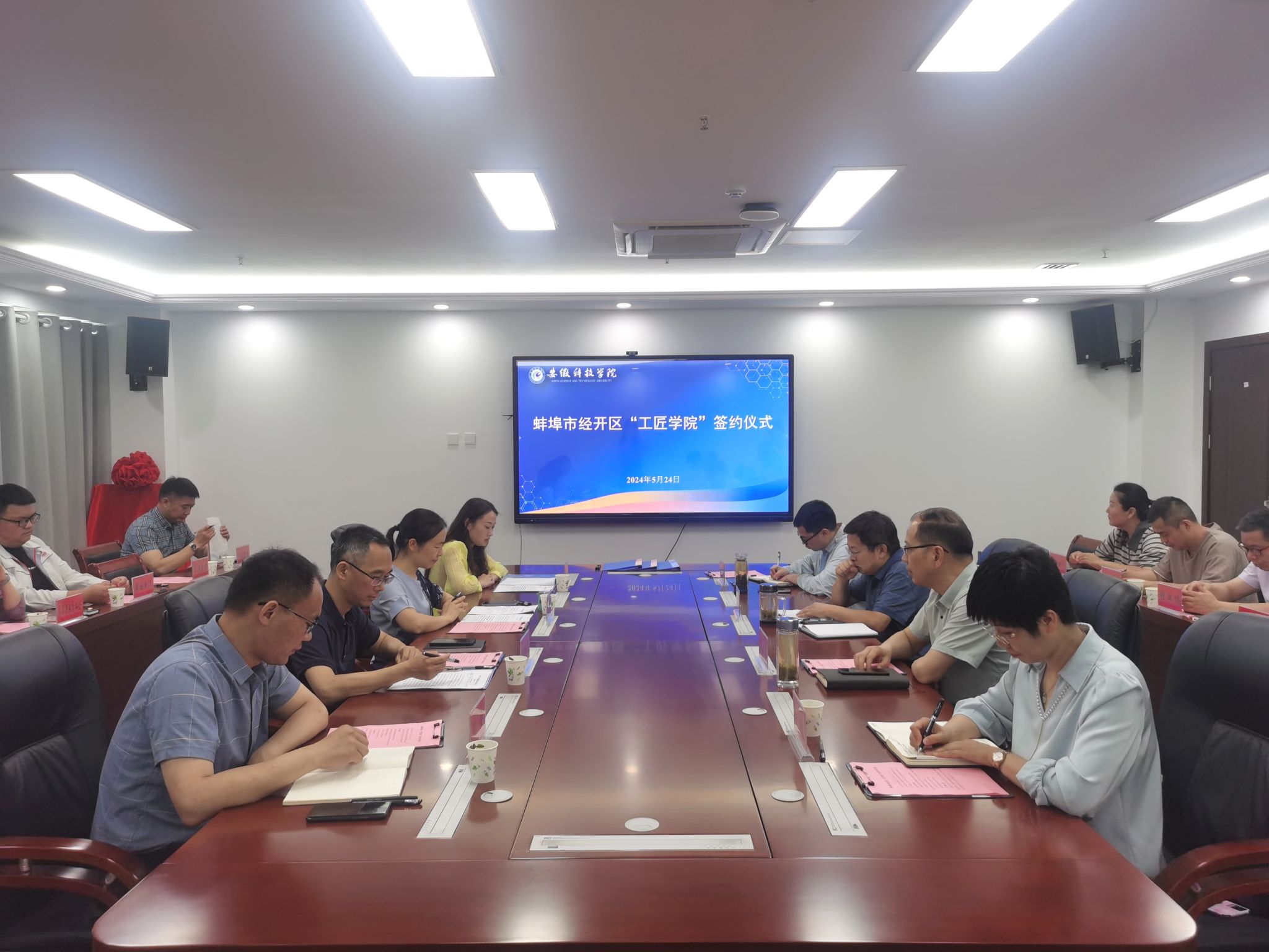 为充分利用高校科技与人才优势,精准对接地方经济社会发展需求,推动产学研用深度融合。5月24日上午,管理学院与蚌埠市经开区总工会联合举办的“经开工匠学院”签约揭牌仪式在我校龙湖校区西辅楼416会议室如期举行。蚌埠市经开区二级调研员张鹏远、经开区总工会副主席李秀丽、经开区团委书记兼投资促进局副局长王奎、经开区社会事业局副局长唐娇娇、经开区部分企事业单位工会主席、劳模工匠代表及管理学院党政领导和师生代表共同出席了签约揭牌仪式。仪式由唐娇娇主持。