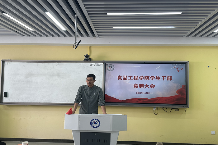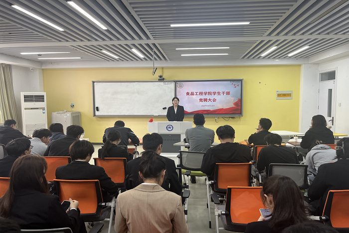 为选拔优秀学生干部,更好服务青年学生成长成才,10月12日上午,食品工程学院在求知楼B307召开学生干部竞聘大会。学院党委书记付光玺出席会议。会议由院团委兼职副书记王梦连主持。