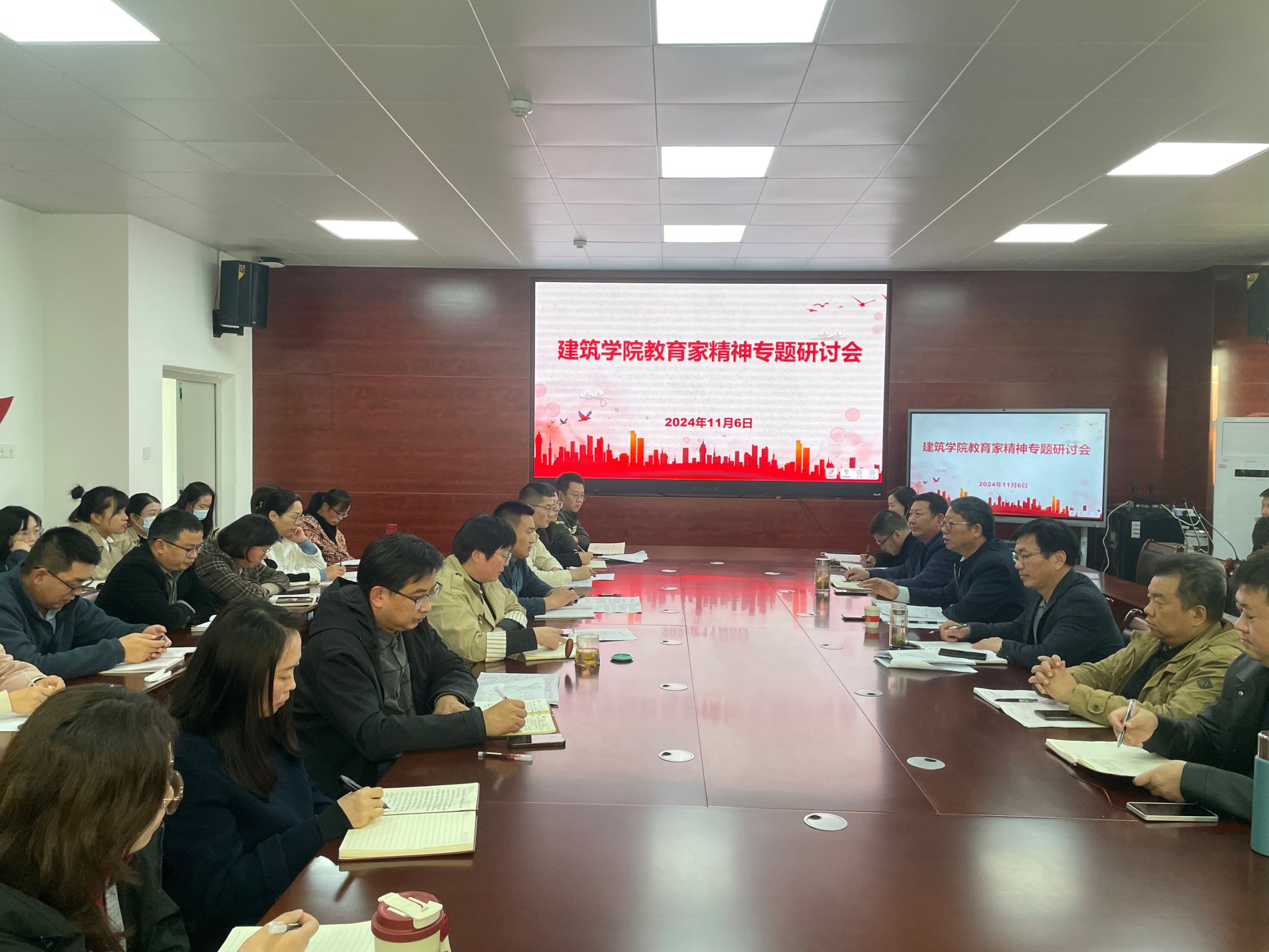 11月6日下午,建筑学院在尚行楼A301会议室召开教育家精神专题研讨会,校党委委员、院长李升和出席并作指导讲话。建筑学院党政班子及全体教师参加会议,会议由学院党委书记傅友福主持。