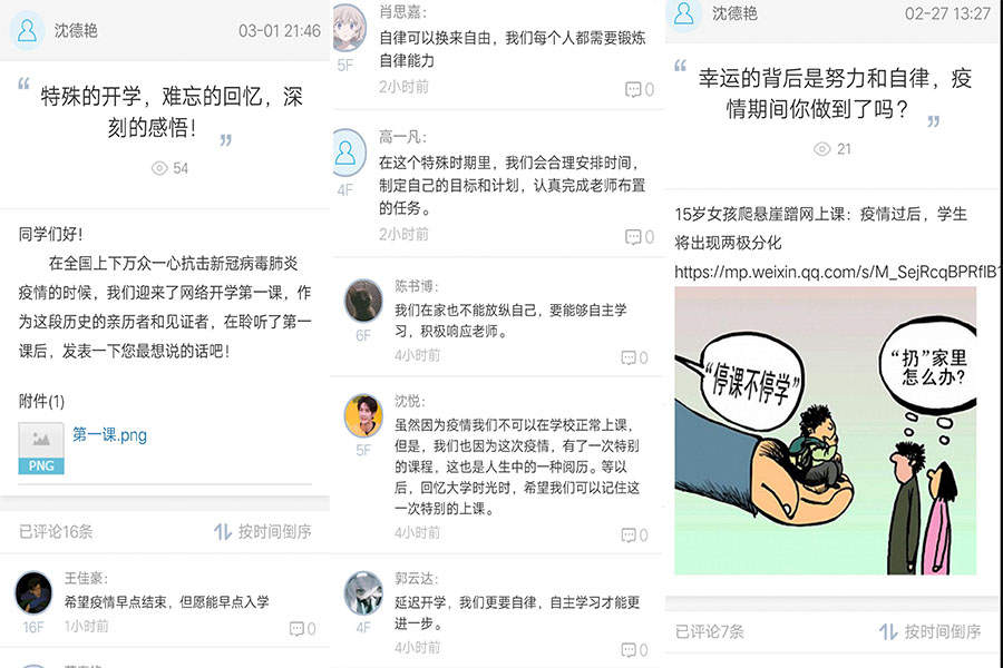 为贯彻落实教育部“停课不停学”的要求,从星空网页版登录入口应对疫情防控工作的实际出发,以学生为本,建筑学院辅导员们通过易班、腾讯视频、QQ、微信等线上平台召开主题班会,认真做好学生心理健康教育,保障疫情停课期间学生的学习有序进行,助力疫情防控工作。