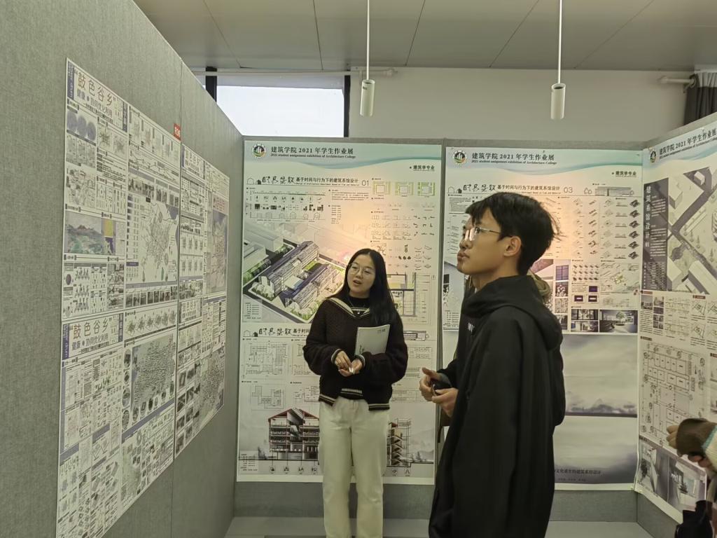 本支部学生党员讲解员带领新生前往建筑学院尚行楼A座,为新生热情讲解大厅中心充满中式古典风格的设计和规划;接着,引导新生参观实验室,同学们被新颖的实验器材所吸引,踊跃提问,讲解员耐心讲解,现场气氛热烈。活动最后,新生跟随讲解员前往评图室,参观建筑学院优秀学生们获得的各类奖项、优秀作品和优秀作业。