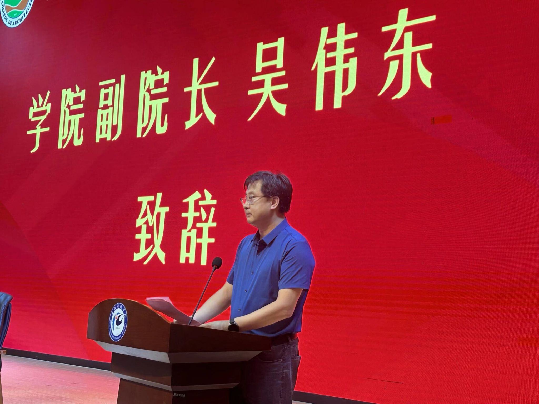 学院副院长吴伟东致开幕辞。他代表学院对2025级新生的到来表示热烈的欢迎,接着围绕学院发展、师资队伍、育人环境等方面,向新同学们展示了学院近年来取得的丰硕成果,并寄语全体新生要“志存高远,与时俱进,持之以恒”,勉励同学们要树立远大理想,科学谋划未来,善于学习,敢于担当,勇于创新,依托学院优良的教学条件以及实验平台去书写属于自己的华章。