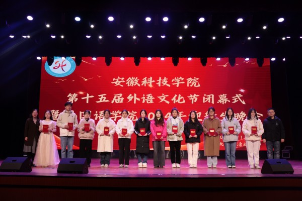 在晚会进行过程中,还举行了隆重的颁奖仪式。外国语学院院长刘萍、党委书记蔡为青共同为2024年“外研社·国才杯”“理解当代中国”全国大学生外语能力大赛校内选拔赛获奖学生颁奖;外国语学院副院长邓兆红、副书记张海亮为校第十五届外语文化节各项比赛中取得优秀成绩的个人和团队颁奖。颁奖同时,勉励获奖者以此为契机,再接再厉,在外语学习中取得更加突出的成绩。