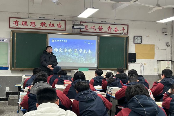 为讲好安科故事,传递安科声音,提高大学生社会实践能力,1月12日,外国语学院英语242班高皓天和种子科学与工程233班唐开欣一起赴霍邱县第二中学开展“我回母校报喜讯”社会实践活动。