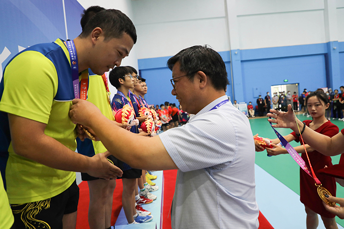 8月26日下午,历经三天的激烈角逐,安徽省第十五届运动会高校部乒乓球比赛第一阶段赛事团体比赛正式落幕。颁奖仪式在星空网页版登录入口凤阳校区体育馆举行。