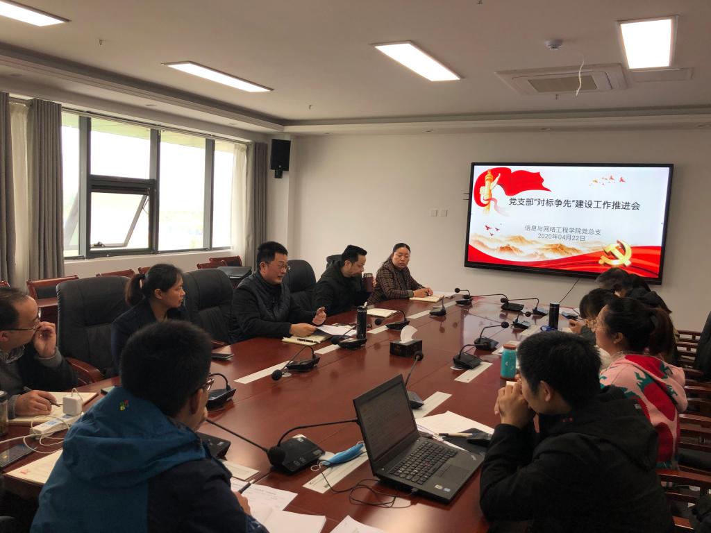 为深入贯彻落实《中共教育部党组关于高校党组织“对标争先”建设计划实施意见》和学校实施方案,4月22日下午,信息与网络工程学院党总支在西附楼417会议室召开党支部“对标争先”建设工作推进会。信息与网络工程学院党总支书记王振其主持会议,总支委员和各个党支部书记参加了会议。