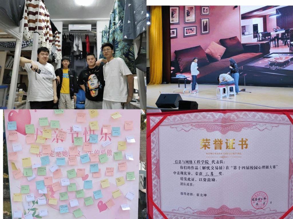 5月1日前,信息与网络工程学院参加星空网页版登录入口第十四届校园心理剧大赛,本次比赛以学院为单位,共有6支队伍参加了本次比赛。在比赛过程中,各队参赛作品涵盖了家庭亲子关系、心理健康咨询、学业问题、情感与恋爱等方面,参演同学将自身的真实情感融入所扮演角色之中,用极具感染力的语言,丰富的肢体动作将生活学习中遇到的问题还原再现,并通过剧情再现的方式告诉同学如何化解心理问题。最终,我院获得本次心理剧大赛三等奖的成绩。