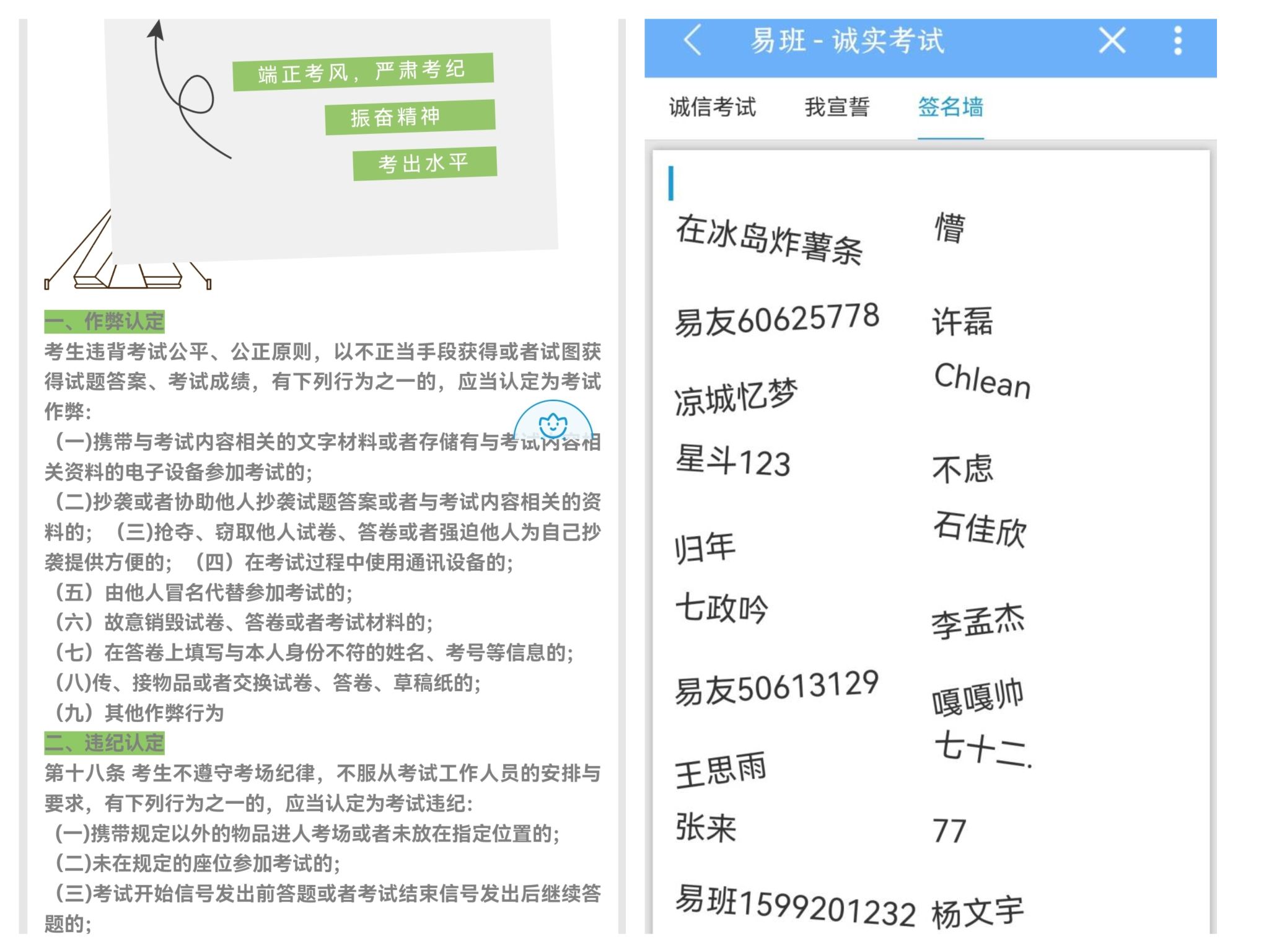 会上,各辅导员带领班级学生认真学习了《星空网页版登录入口学生手册》中有关考风考纪的内容,对考试时应当遵守的注意事项及违纪行为的严重后果做了特别强调,向学生们传达了诚信考试的重要性和必要性,建议同学们对期末考试制定合理的复习计划,认真备考。各班辅导员还列举了校内外各种考试违纪行为被处分的真实案例,加强警示教育,要求同学们清晰认识到考试作弊的危害,希望他们严守考风考纪,认真备考,诚信考试,并组织班级同学签署诚信考试承诺书。