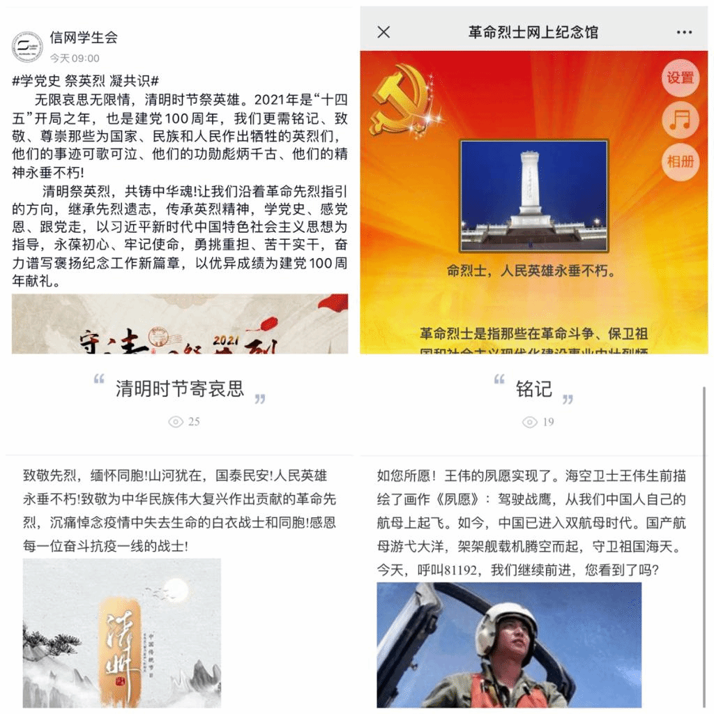 为学习贯彻习近平总书记关于崇尚英雄、缅怀英烈的重要论述,深入开展党史学习教育,在清明节之际,信息与网络工程学院开展“学党史,祭英烈”系列主题教育活动。