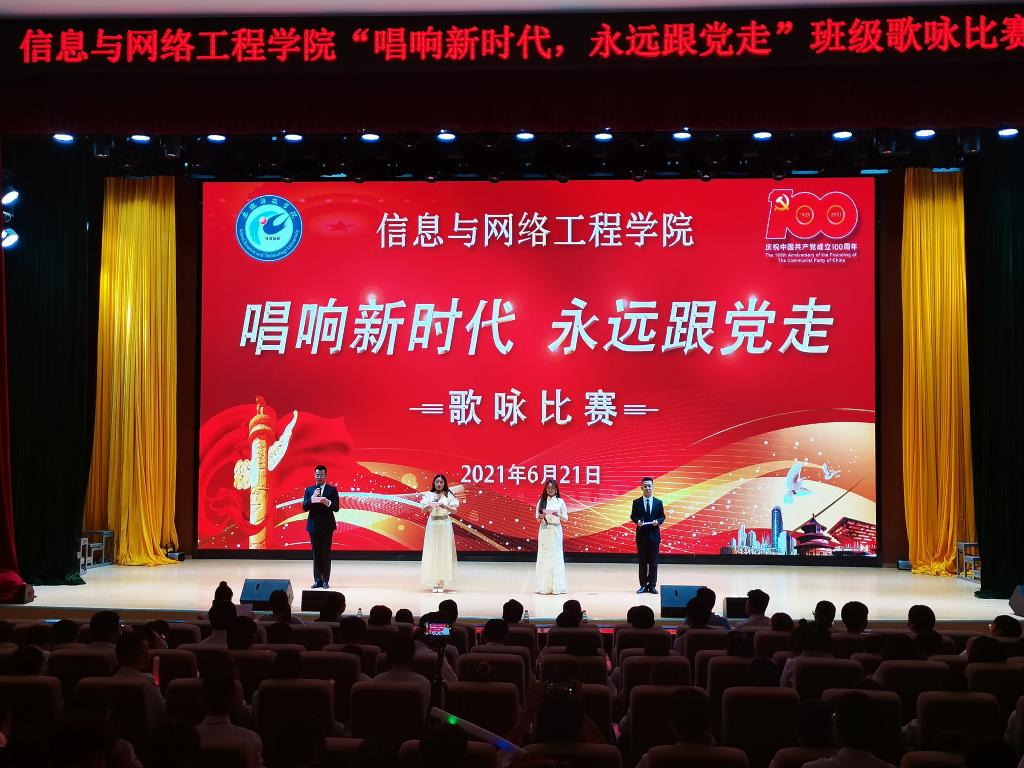 为深入学习贯彻习近平总书记在党史学习教育动员大会上的重要讲话精神,教育引导广大青少年肩负历史使命、传承红色基因。6月21日晚,信息与网络工程学院在东辅楼报告厅举办“唱响新时代,永远跟党走”班级歌咏比赛,校学生处副处长胡文靖、信息与网络工程学院党委书记王振其、院长余宏杰、正处级组织员周向群、党委副书记韦乃学、全体辅导员莅临现场指导并担任评委,2020级全体学生参加比赛,比赛由朱翔、曹淑婧、田思佳、陈良戈主持。