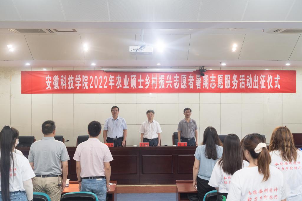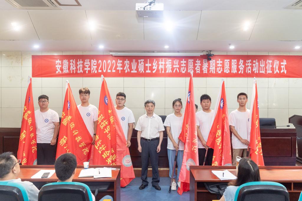 7月2日上午,学校“青春志愿行,助农促振兴,献礼二十大”2022年农业硕士乡村振兴志愿者暑期志愿服务活动出征仪式在凤阳校区图书馆一楼报告厅隆重举行。校党委书记蒋德勤,党委副书记、院长李震,党委委员、副院长李升和出席仪式,研究生培养学院院长、分管副院长、带队教师、研究生处工作人员和全体研究生志愿者参加出征仪式。出征仪式由李升和主持。