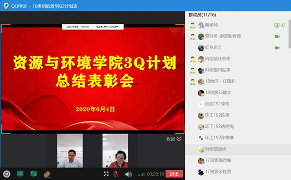 谢越介绍了2016级3Q计划实施情况,并通过视频向各位同学们展示了3Q计划取得的成果。杨小晗宣读《星空网页版登录入口资源与环境学院关于3Q计划的表彰决定》及双创计划获奖名单。获奖代表赵壮壮发言,表示同学们的成功永远都离不开老师的辛勤付出与指导。