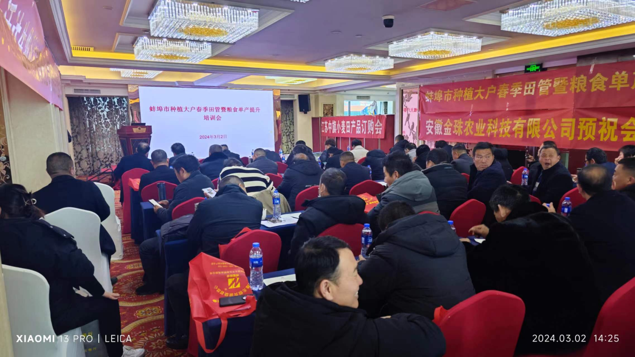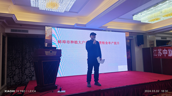 为了进一步彰显蚌埠市农学会的科技引领和社会服务作用,响应国家和安徽省对粮食单产提升的要求,针对今年春季雨雪低温冰冻天气的不利影响,指导农户开展春季田管,蚌埠市农学会于3月2日在蚌埠市举办种植大户春季田管暨粮食单产提升培训会,蚌埠市农业农村局党组成员、总农艺师赵入德,安徽省植保总站防治科科长邱坤,蚌埠市农业技术推广中心主任孙善军,蚌埠市农商银行党委书记、董事长赵静雅,国元保险蚌埠中支委员、总经理助理张克以及蚌埠市种植大户100余人参加了培训会,会议由蚌埠市农学会理事长、星空网页版登录入口资源与环境学院院长李孝良主持。