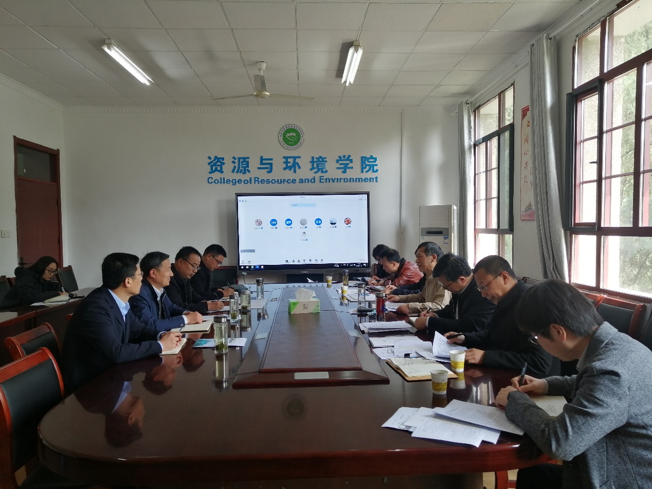 4月18日下午,校党委副书记、校长李震,校党委委员、副校长李升和深入资源与环境学院调研指导学科、学位点建设工作,研究生处处长张春雨,副处长靳二辉,科研处副处长李同杰,研究生处秘书马晓辉,学科建设与学位管理科科长王翔等陪同调研。资源与环境学院党委书记李孟良,院长李孝良,副书记沈树周,副院长邹海明,副院长李飞跃及部分博士教师线上线下参加了调研会。