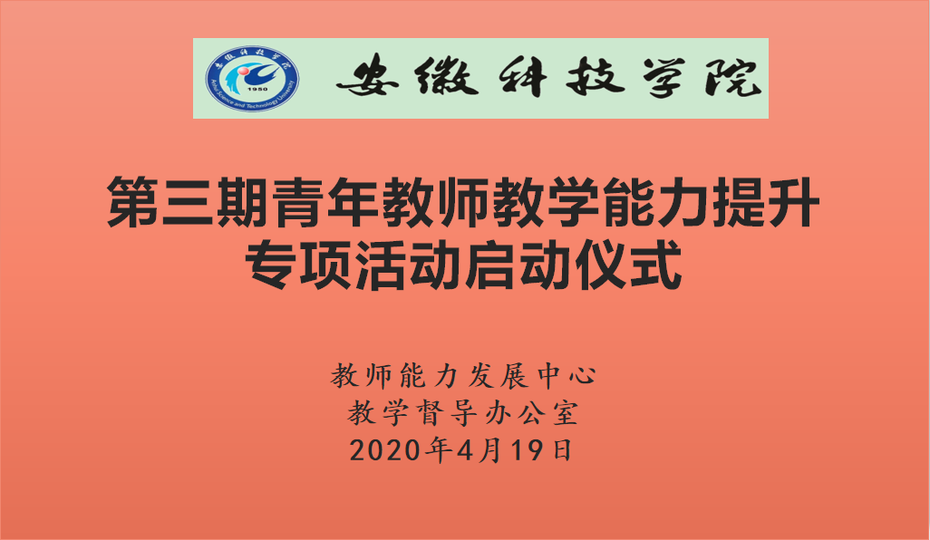 为帮助青年教师掌握教学技能和方法,促进教学能力快速提升,提高教学水平和教学质量,学校教学督导办公室和教师能力发展中心联合举办第三期青年教师教学能力提升专项活动。4月19日,活动启动仪式通过腾讯会议平台在线举行,教学督导办公室主任程斌,人事处副处长、教师能力发展中心副主任詹学文出席启动仪式,校院两级教学督导员、参加第三期青年教学教学能力提升活动的29名青年教师、教学督导办公室工作人员参加了仪式,仪式由程斌主持。