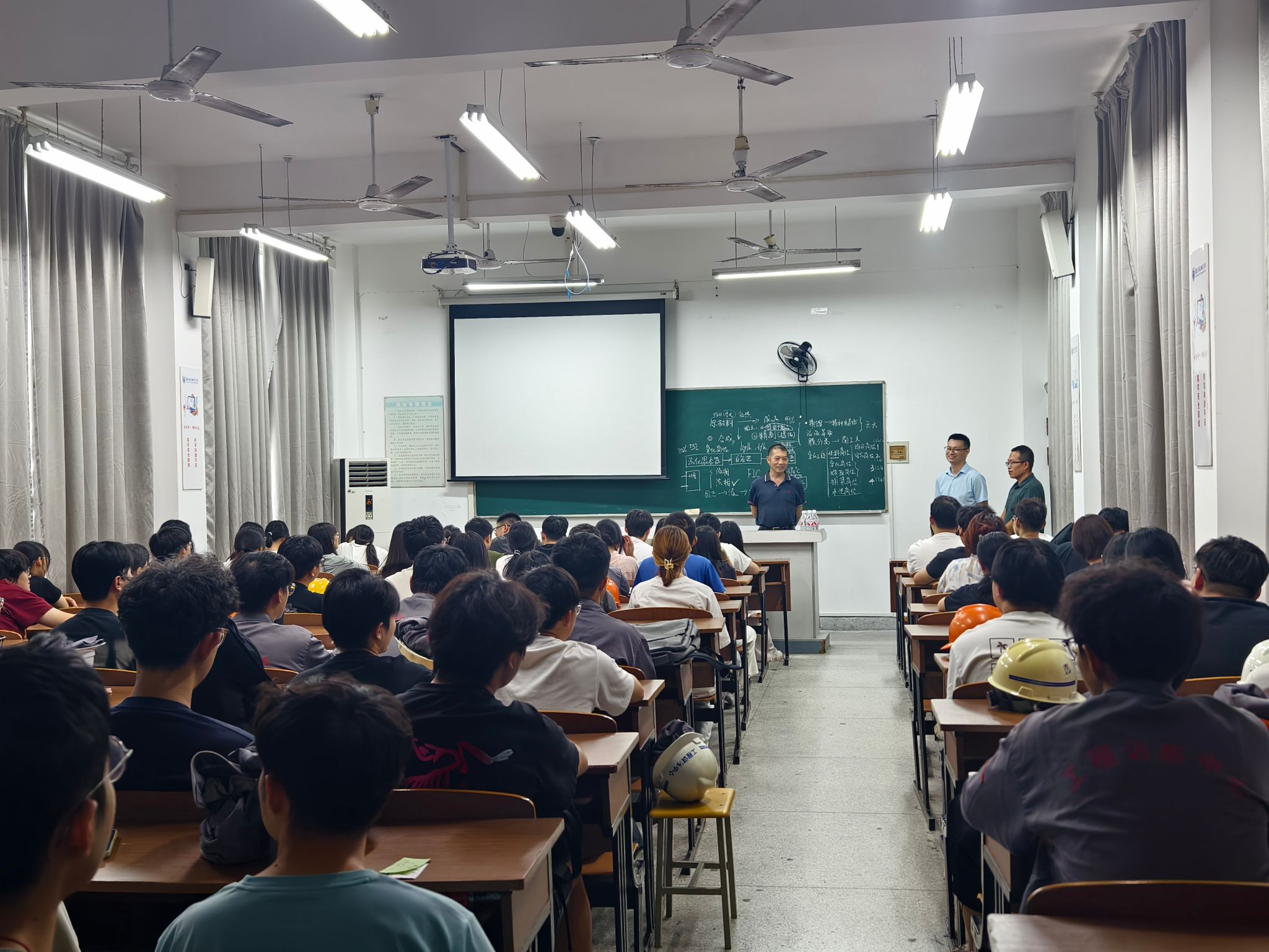 9月11日,化学与材料工程学院党委书记黄树桥、教学副院长叶龙强、辅导员路润麟一行前往南京科技职业学院实训中心,看望在此实习的2022级应用化学专业全体学生。