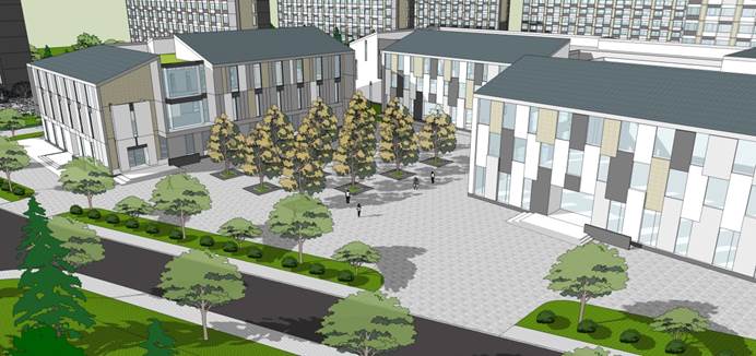 沿景观主轴的两侧教学组团相邻绿地可点缀碧桃等开花小乔木,并搭配毛鹃,玉簪,丰花月季等开花灌木或草本宿根花卉丰富景观的层次和观赏性。