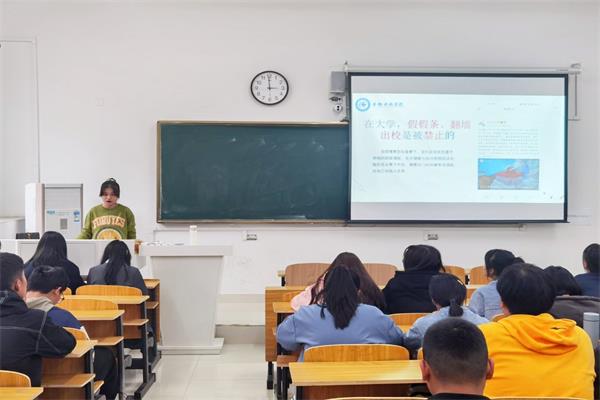 此次主题教育从两方面开展,一是用校训精神引领大学生行为规范。首先通过新闻案例分析大学生文明修养现状,剖析问题存在的原因。接着以介绍我国传统礼仪文化入手,说明加强当代大学生文明素养教育的必要性。最后立足校训精神传承,结合《星空网页版登录入口学生日常行为规范(试行)》及《学生手册》相关要求,围绕修身养性立德、格物致知立学、正心诚意立事、创新发展立世四方面进行教育引导。二是在党史学习与青年榜样中获得感悟。用本校青年榜样单新海同学修身进德、刻苦认真的事例激励新生提高文明素养,规范自身言行,争做新时代新青年。同时结合党史教育,播放“中国共产党百年述职报告”视频,让同学们在百年党史中汲取奋进力量。