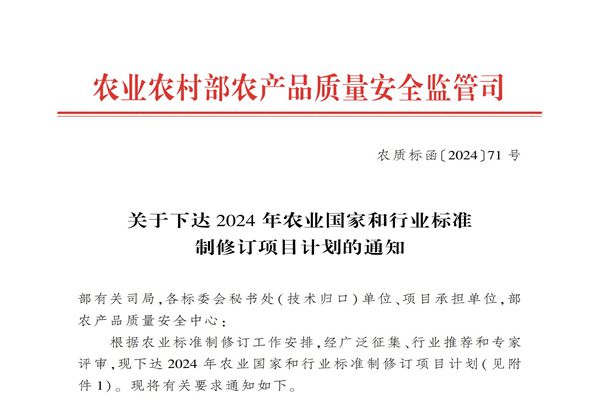 近日,农业农村部农产品质量安全监管司下达了2024年农业国家和行业标准制修订项目计划的通知(农质标函〔2024〕71号),我校尹雪斌教授团队申报的“制定《富硒茶生产技术规程》标准”项目(编号:NYB-24143)获批立项,这是我校首次获批农业农村部功能农业行业标准制定项目立项。