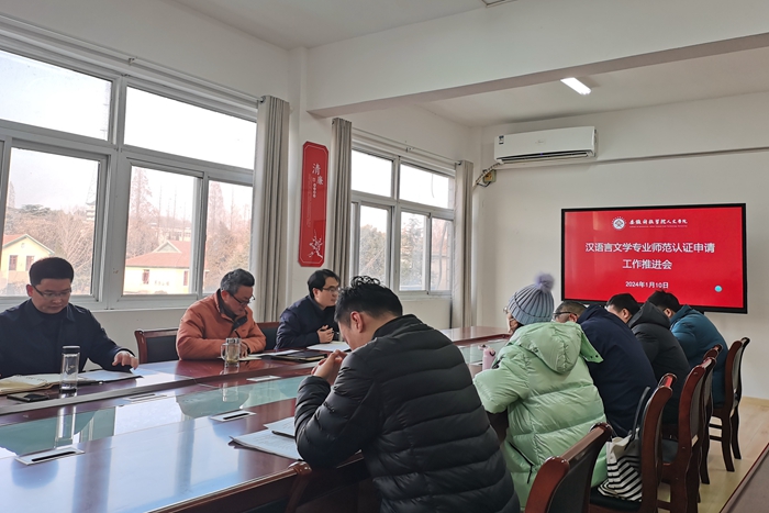 1月10日下午,人文学院在学知楼324室召开汉语言文学(师范)专业认证申请工作推进会。人文学院党政领导出席会议,汉语言文学(师范)专业认证工作各小组负责人、中文系部分教师、辅导员参加会议。会议由学院党委副书记、院长李晓东主持。