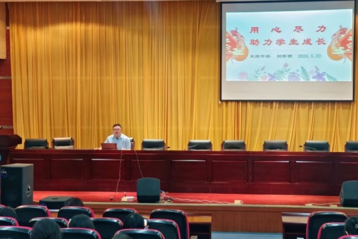 5月22日下午,安徽省凤阳中学优秀教师刘怀明应邀来我校作师范专业班级管理专题报告,2021级英语和汉语言文学专业全体学生参加报告会。报告会由外国语学院副院长洪民主持。